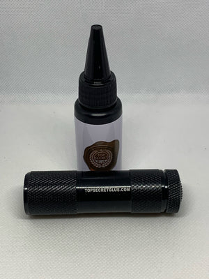 Top Secret PDR tool coating fast Cure formula. Each order comes with a 30g bottle of our Fast Cure UV activated formula and a UV flashlight that uses 3 AAA batteries. This stuff works like magic get yours before it gone. This will harden completely in 15 to 20 seconds. MANY, MANY uses I use this to bond multiple surfaces and it is sand able and shapeable.