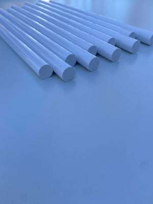 Top Secret PDR white glue these sticks are 1/2” diameter and will fit a standard glue gun (NOT Mini guns) and each stick is approximately 8 inches in length. These can be used in PDR and were designed to be used in cooler temperatures. They Pull pretty hard.